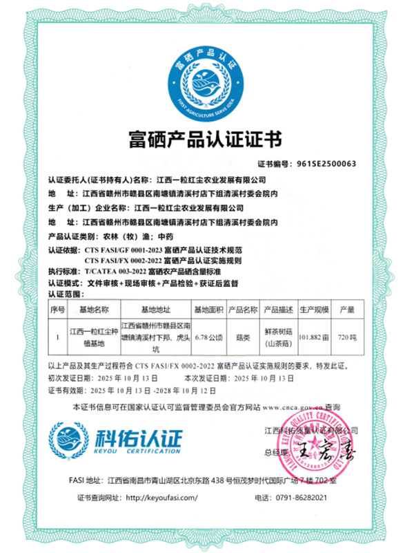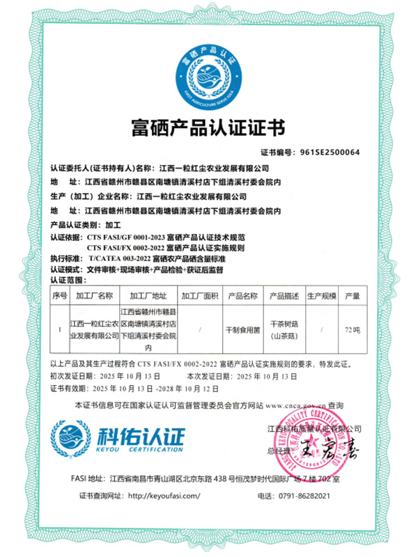 富硒產(chǎn)品認(rèn)證證書(shū)